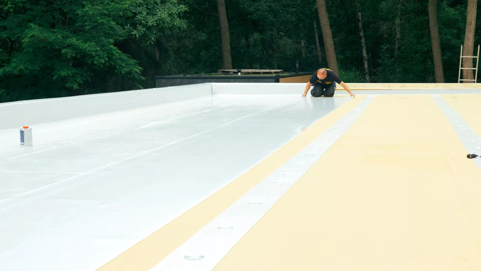 Tam yapıştırmalı tek katlı çatı sistemiyle Leadax Roov, su bazlı yapıştırıcı vasıtasıyla alt tabakaya yapıştırılır.